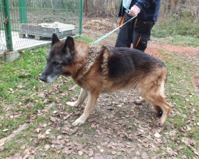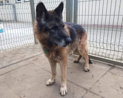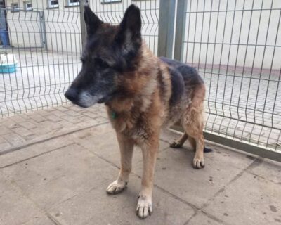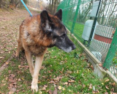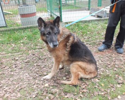 Auror to duży, starszy pies, mieszaniec owczarka niemieckiego. Jest spokojny i sympatyczny. Czeka na swoją kolejną szansę w życiu.