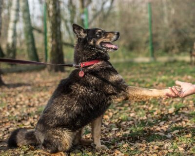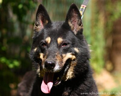 Energiczna i sympatyczna sunia. Trafiła do schroniska po śmierci swojego właściciela 14 listopada 2013 roku.